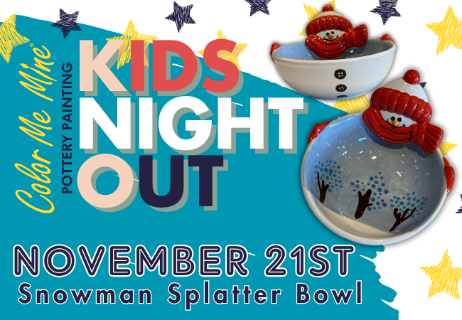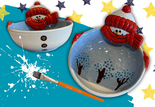 - Event fee includes 1 Snowman Bowl, paint supplies, instructor guiding, painting, pizza + glazing/firing afterwards
